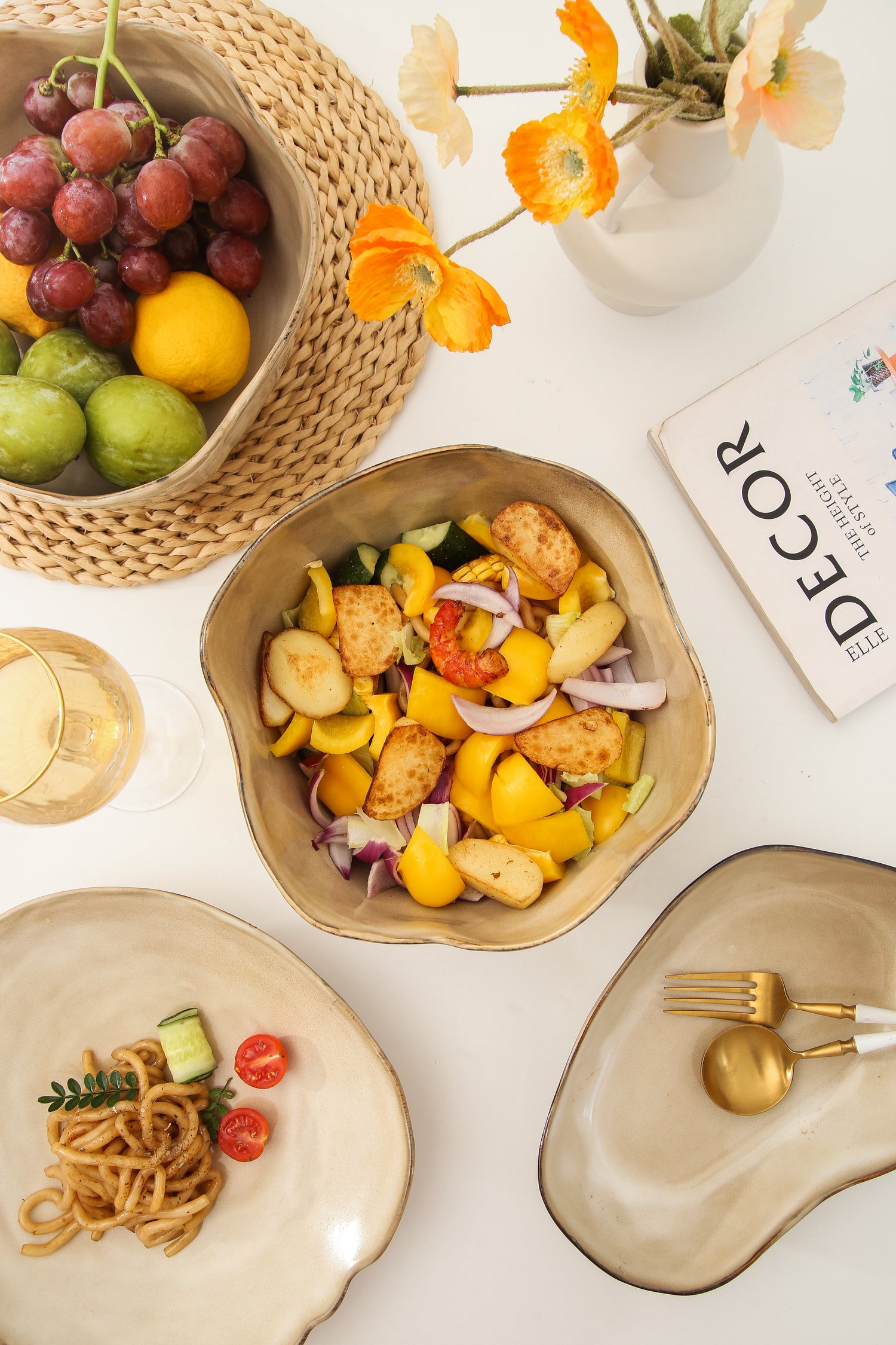 Discover the beauty of slow living with our Decosignature Handcrafted Stoneware Bowl. Each piece is individually shaped and finished with a soft, natural glaze that captures the charm of modern minimalism. Designed for both daily use and elegant serving, it brings a warm, artisanal touch to your table turning every meal into a moment of quiet luxury.