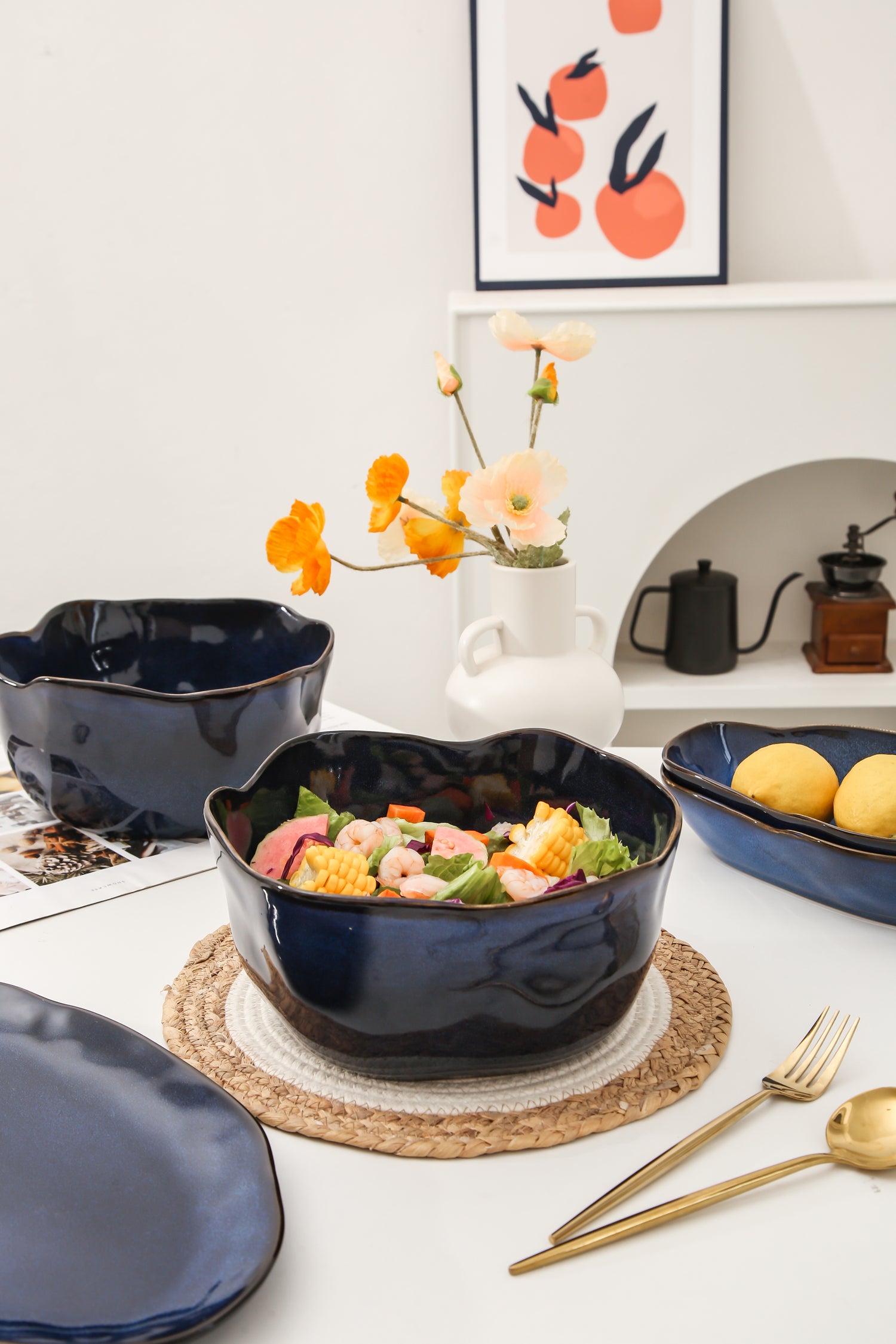 With its rich, deep glaze and sculptural form, the Ocean Blue finish brings a sense of coastal sophistication to the table. Designed to make a visual statement while enduring everyday use, this set offers lasting elegance wrapped in natural beauty.