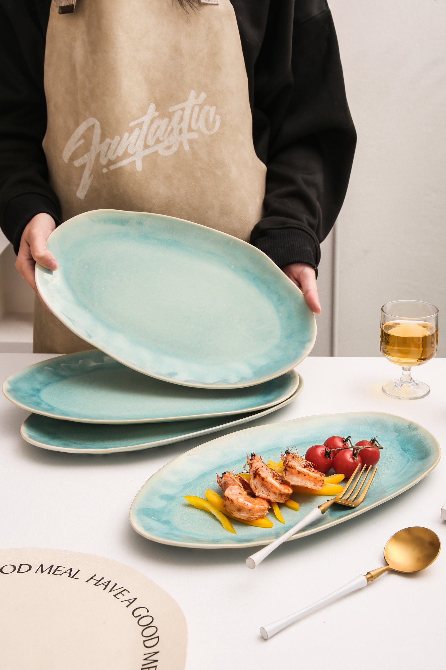 Each serving platter is formed from high-quality stoneware clay and kiln-fired at high temperatures to achieve lasting strength. The hand-applied reactive glaze reveals delicate tonal shifts across each surface, highlighting the natural characteristics of the clay while capturing the tranquil essence of Aqua Blue.