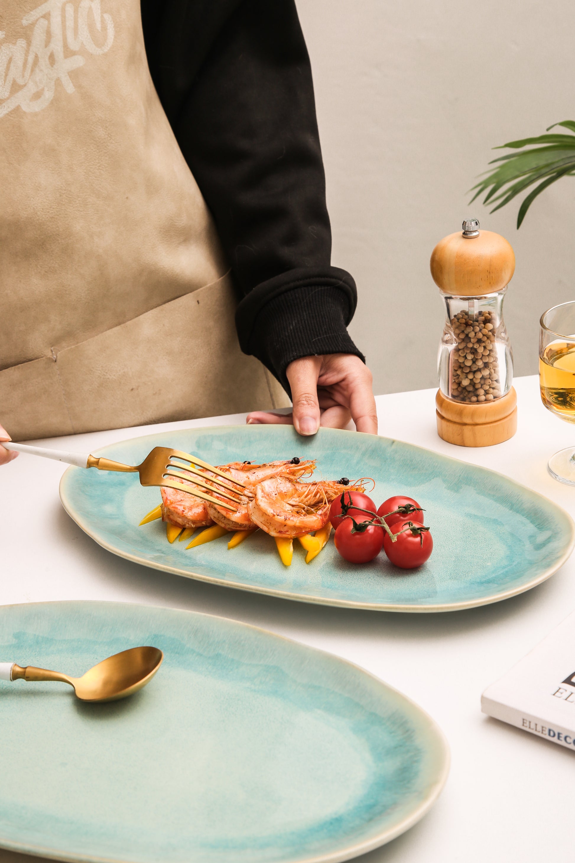 Softly curved, organic forms and a breezy Aqua Blue finish give this set a relaxed, artisanal elegance. The gentle, fluid edges add character to your table, while the durable, chip- and scratch-resistant surface ensures long-term use. Both beautiful and practical, it’s designed to serve with ease—day after day, year after year.