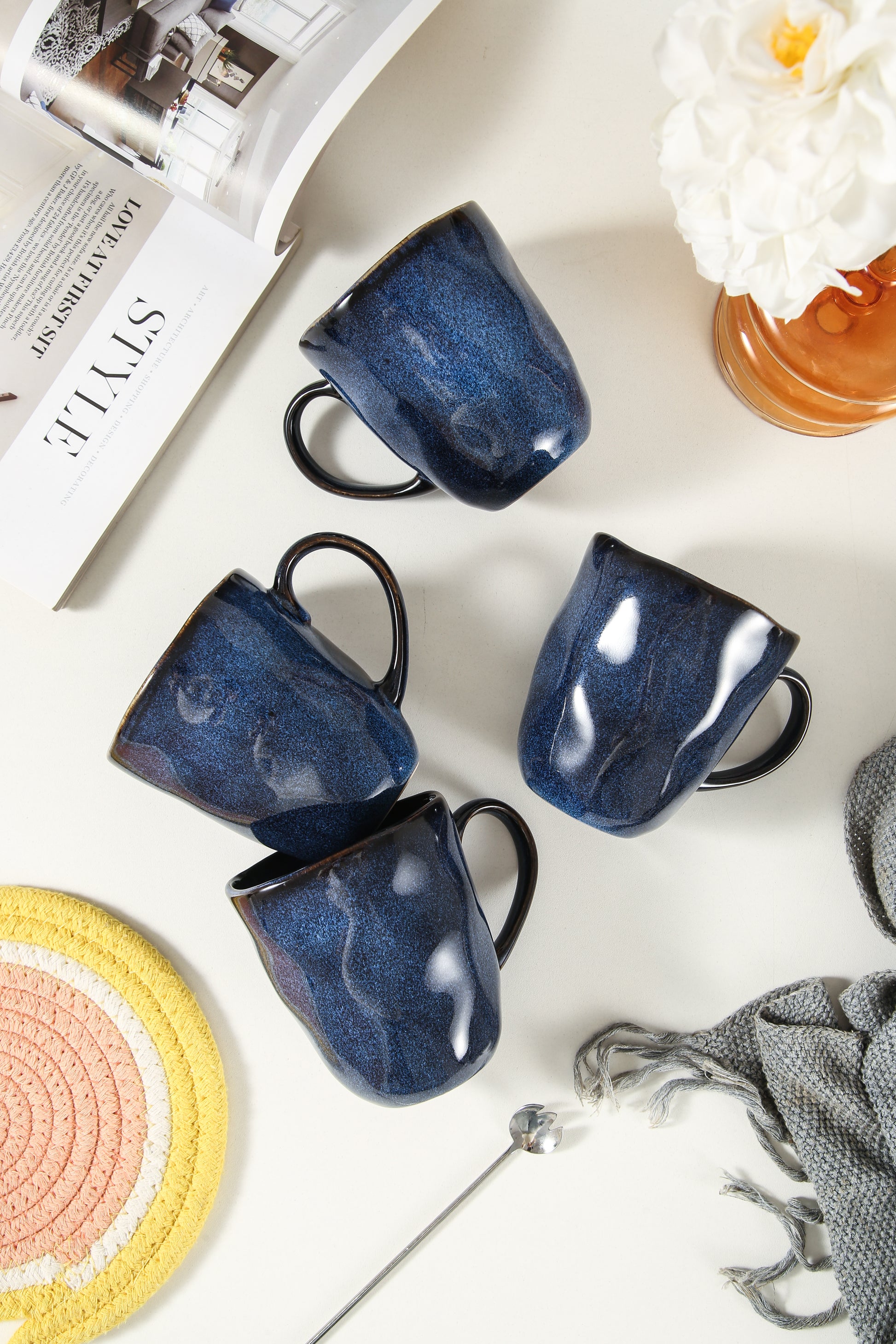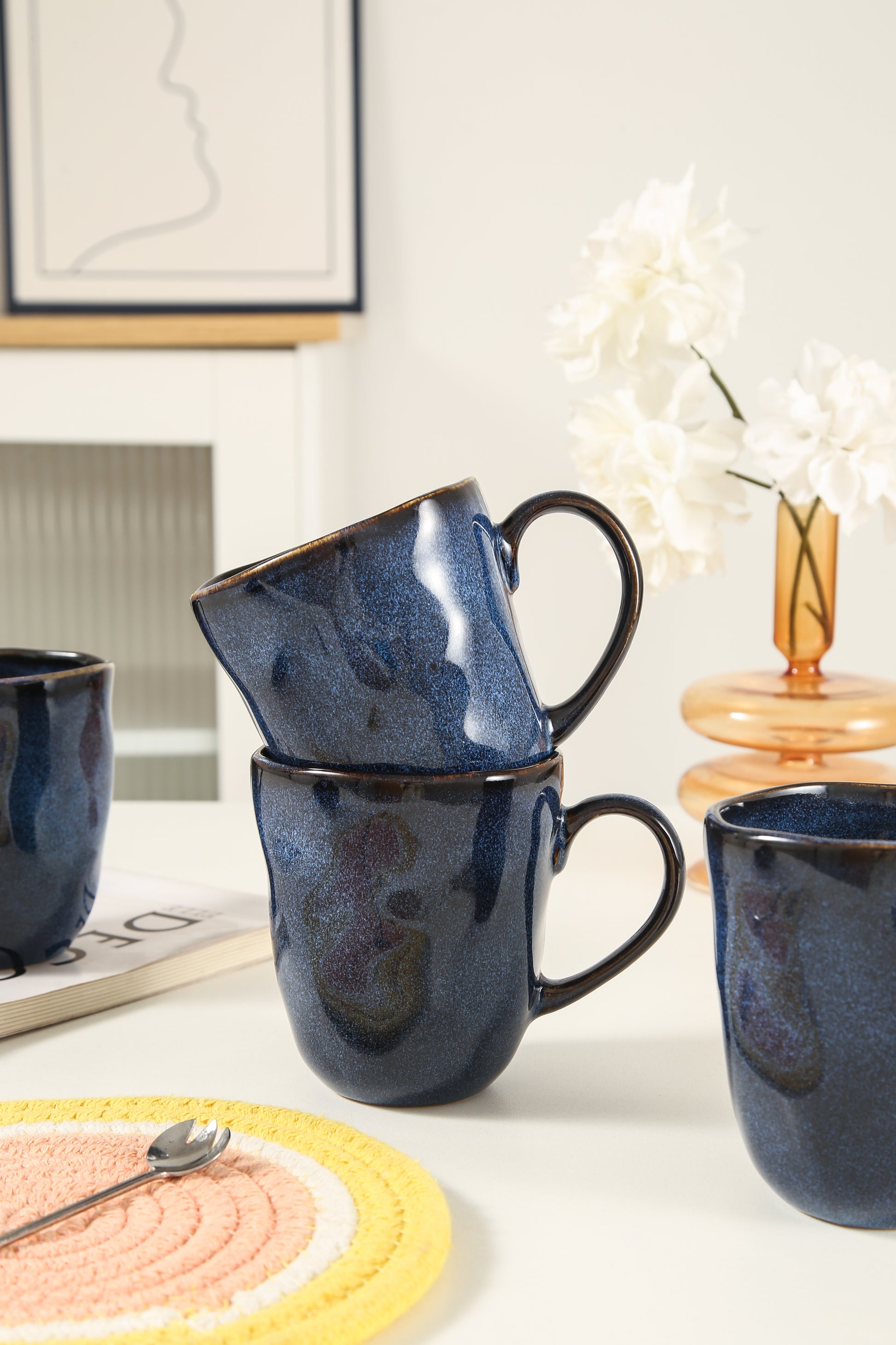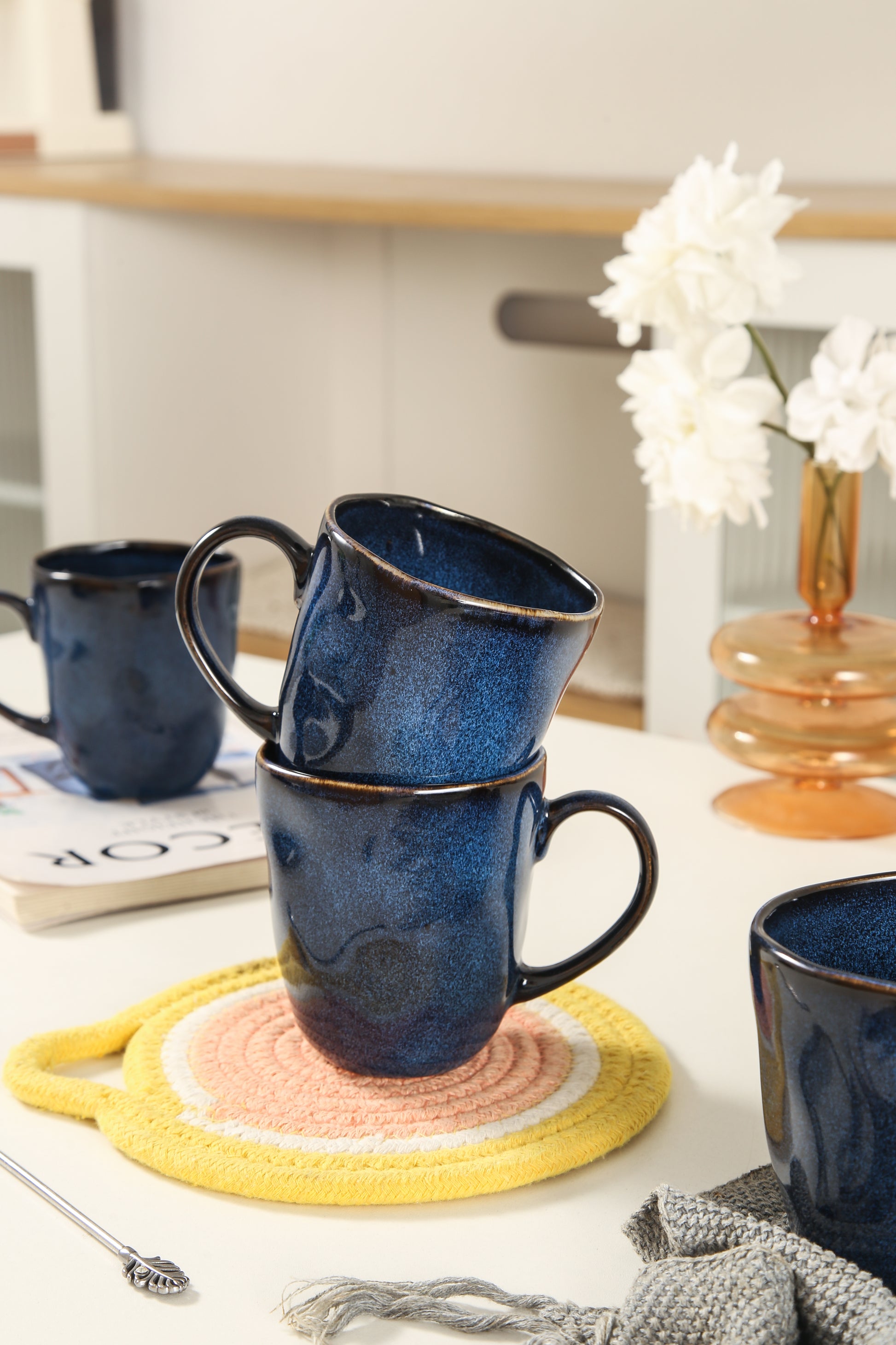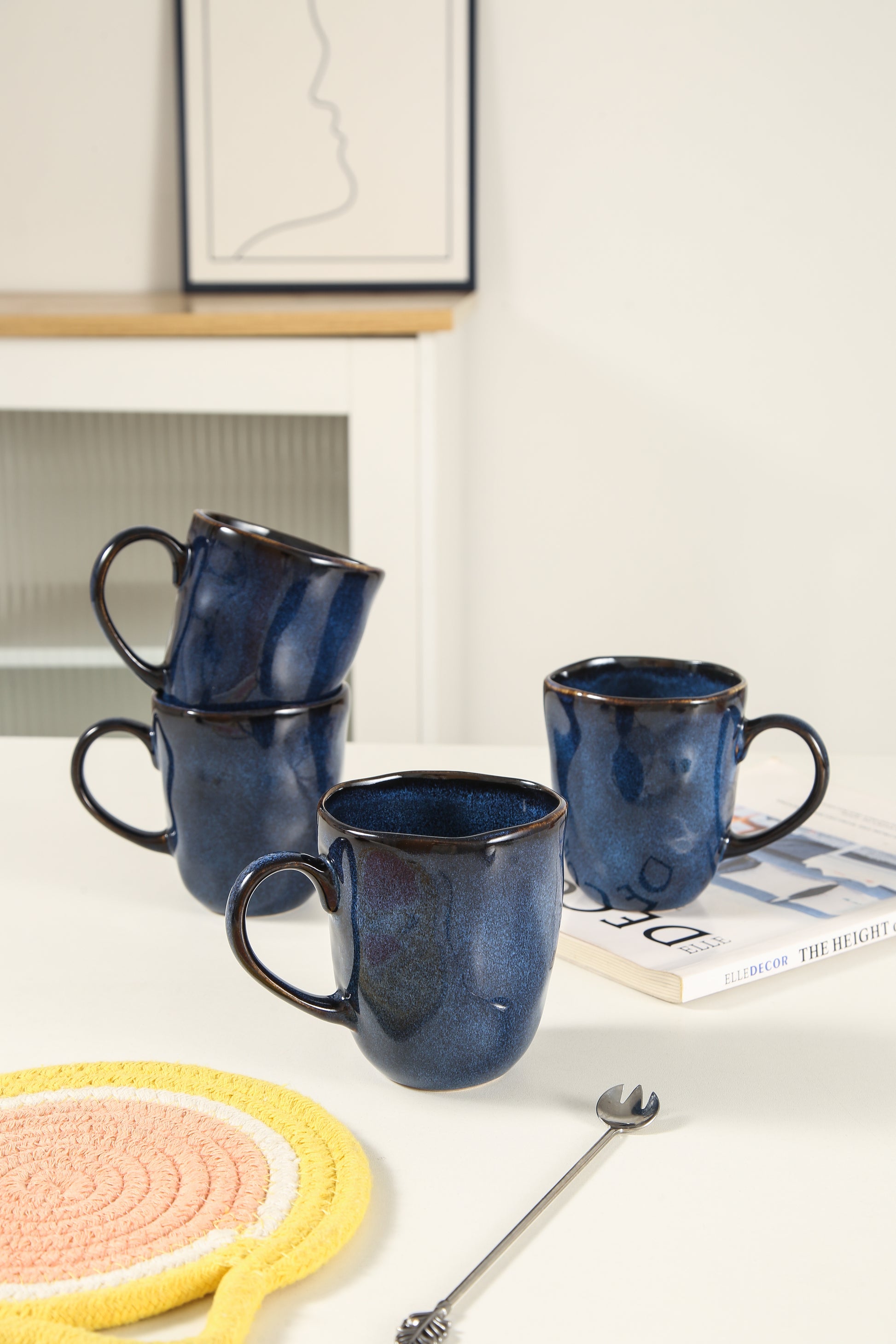 The rich Ocean Blue color adds a bold touch to any table setting, while the organic shape provides a comfortable grip, making every sip a pleasure. Designed for both beauty and practicality, these mugs are scratch- and chip-resistant for lasting durability. Whether for casual mornings or special gatherings, the Decosignature Mug Set offers enduring elegance and functionality.